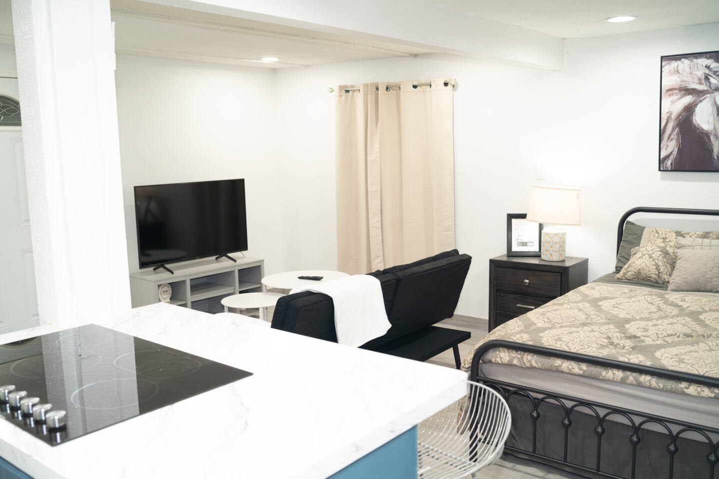 Our home is in a peaceful neighborhood centrally located here in Weslaco of the Rio Grande Valley. We absolutely love our home and excited to rent out our private studio for you to enjoy. Our Guest house includes a Full Kitchen area with Stove top, Microwave, and dining area. The studio provides an open layout with a couch that converts to a bed and Temper-Pedic Queen bed for you to enjoy your stay comfortably. The unit is completely separate with its own private entrance and parking space.